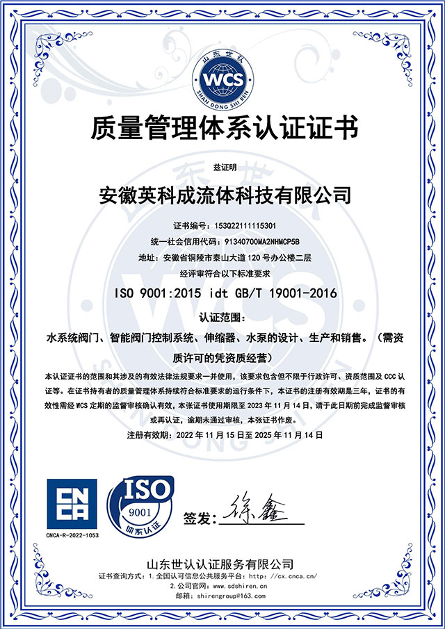 當(dāng)前位置:首頁 > 榮譽(yù)資質(zhì) > 質(zhì)量管理體系認(rèn)證證書